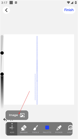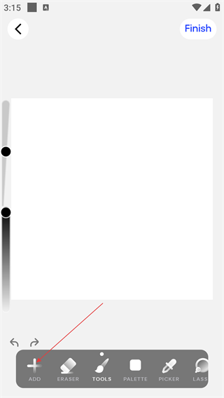 3、进入绘画界面后,点击底部【ADD】按钮,可打开添加功能菜单,插入图片、文字等元素辅助创作。