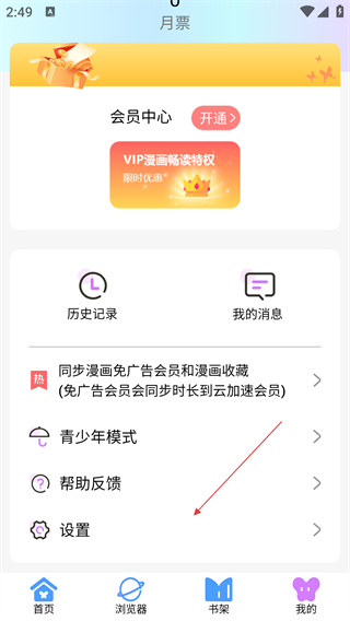 2、进入个人中心界面后,可点击【设置】选项,进入设置界面。