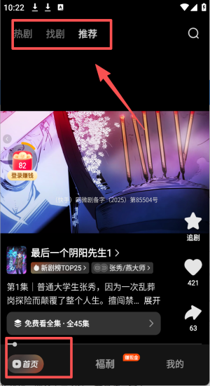 1、点击“推荐”标签,浏览推荐的热门短剧内容。
