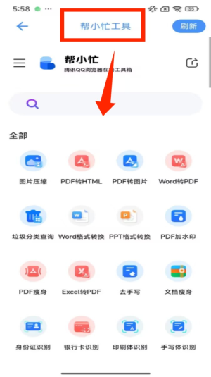 4、选择 “帮小忙工具” 进入对应页面,顶部显示名称,下方呈现图片压缩、PDF 转 HTML 等多种工具选项。