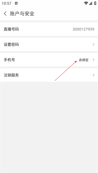 4、在【账户与安全】页面,点击【绑定手机号】,即可进入绑定流程。