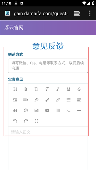 4、在意见反馈页面,填写联系方式(如微信、电话)及反馈内容,提交后完成意见反馈操作。