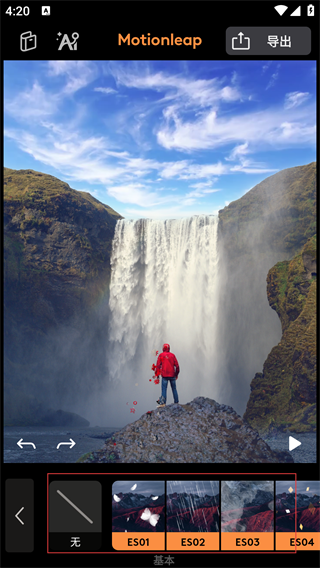 motionleap安卓版下载是一款专为移动设备设计的专业级图片编辑应用,它不仅提供了基本的裁剪、调整色彩和对比度等功能,还引入了先进的AI技术来实现图片的动态效果。用户可以给静态图片添加逼真的动态效果,如流动的水、飘动的云等,让照片生动起来。此外,motionleap还提供了丰富的滤镜和特效选择,帮助用户轻松实现创意视觉作品。对于追求高质量图片编辑体验的用户来说,motionleap无疑是一个非常值得尝试的选择。感兴趣的朋友不妨下载其最新版本,亲自体验一番。