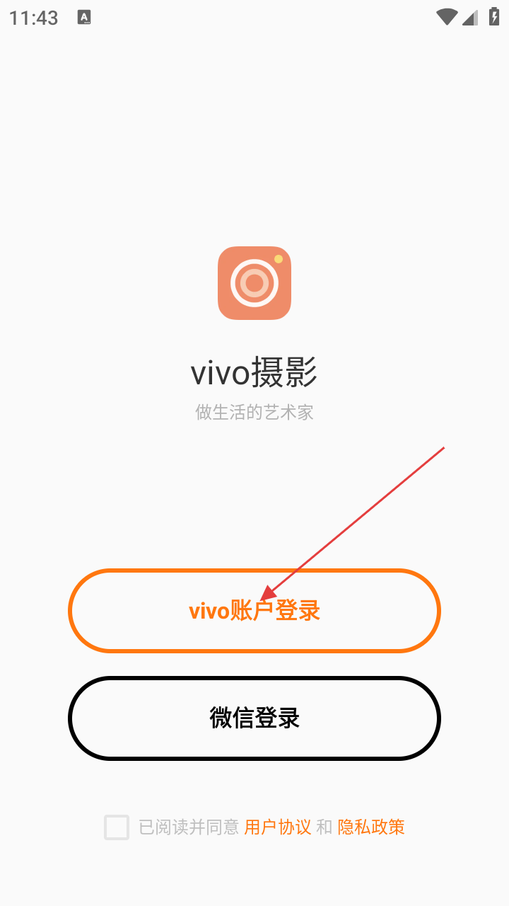 1、首先下载安装好vivo摄影app,通过微信或是vivo账号登入;