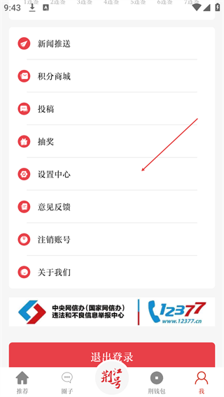 2、在个人中心,选择【设置中心】选项,进入应用设置页面。