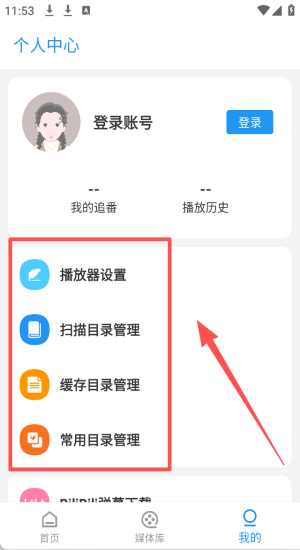 3、在个人中心页面,点击“播放器设置”管理播放器选项。
