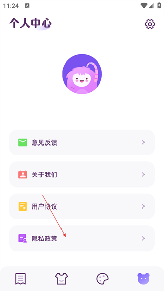 3、进入个人中心页面后,点击【隐私政策】选项,可查看嘀嘀动漫板隐私政策的详细内容。