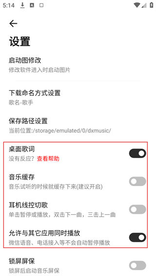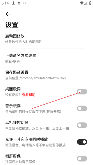 4、确认开关切换为开启状态,完成桌面歌词功能的启用。