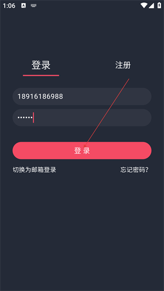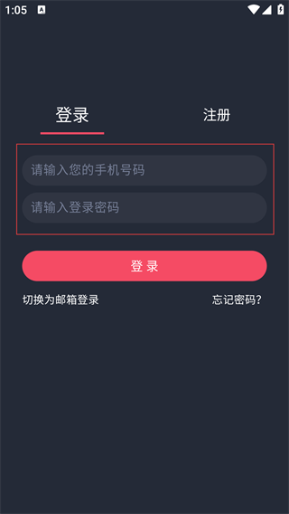3、在登录页面,可输入手机号码和密码登录,也可切换为邮箱登录。