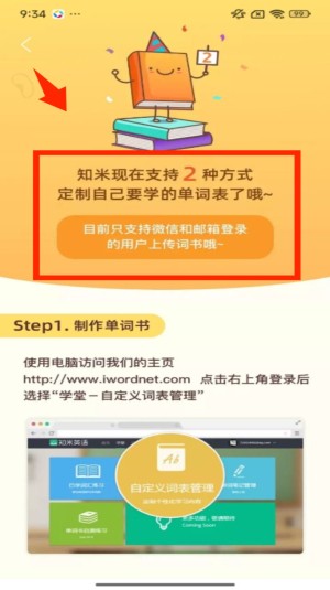3、查看上传方法页面,会提示支持 2 种自定义单词表的方式,且仅微信、邮箱登录用户可上传词书。