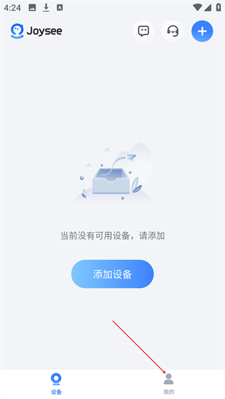 1、在Joysee的设备页面,点击底部【我的】,进入个人中心页面。
