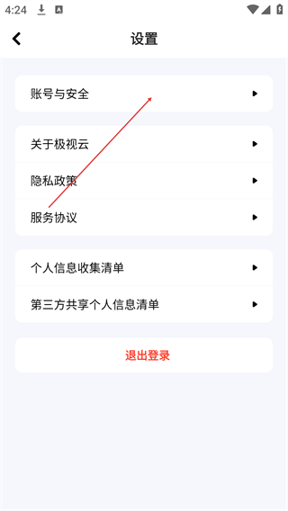 3、在设置页,点击【账号与安全】,进入账号安全管理界面。