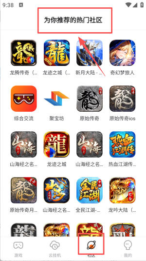 3、切换到 “社区” 界面,浏览 “为你推荐的热门社区” 板块了解游戏交流内容。