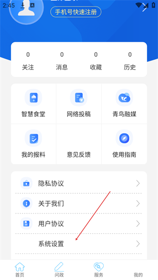 2、在个人中心页面,选择【系统设置】选项,进入系统设置界面。