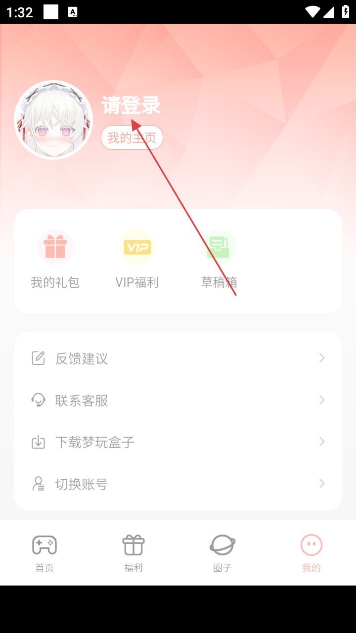 1、在梦玩游戏平台首页,点击右下角【我的】,进入个人界面。