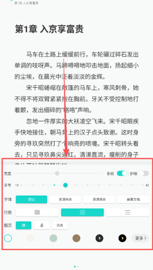 6、在阅读页面也是可以进行一系列的设置的,和其他的阅读软件一样哦。