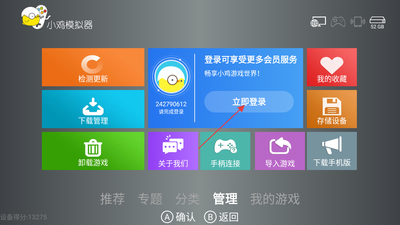 1、打开小鸡模拟器手机端进入到首页中,点击首页右上角的“手柄图标”