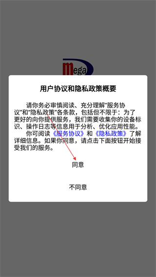 1、进入应用后,阅读“用户协议和隐私政策概要”,点击【同意】,接受服务条款以继续使用。