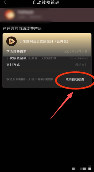 4、在自动续费管理页面点击“取消自动续费”,停止自动扣款服务。