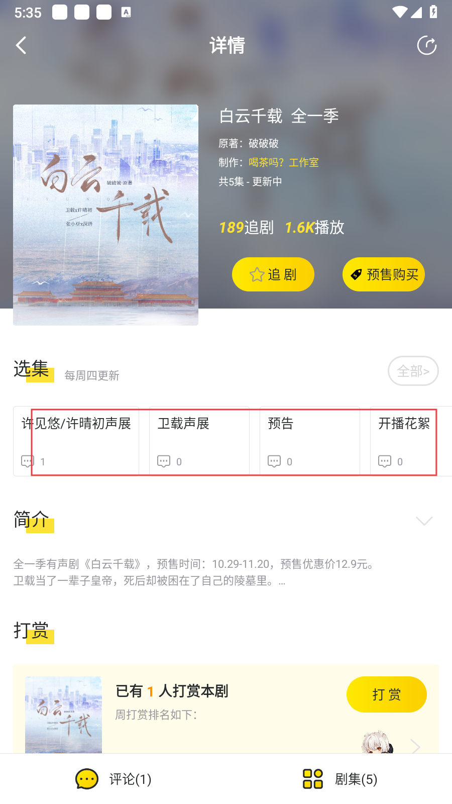 3、点击《白云千载全一季》进入详情页,可查看剧集信息,选择具体选集收听。