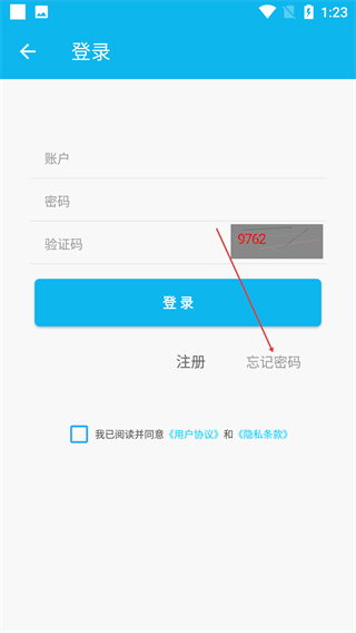 3、在登录页,点击【忘记密码】按钮,进入密码找回界面。