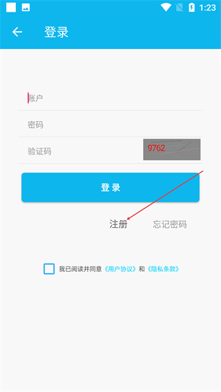 3、若未注册账号,点击登录页的【注册】按钮,进入注册界面。