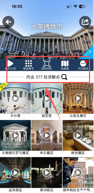 3、进入大英博物馆页面,选古埃及展区等377处讲解点即可收听语音。