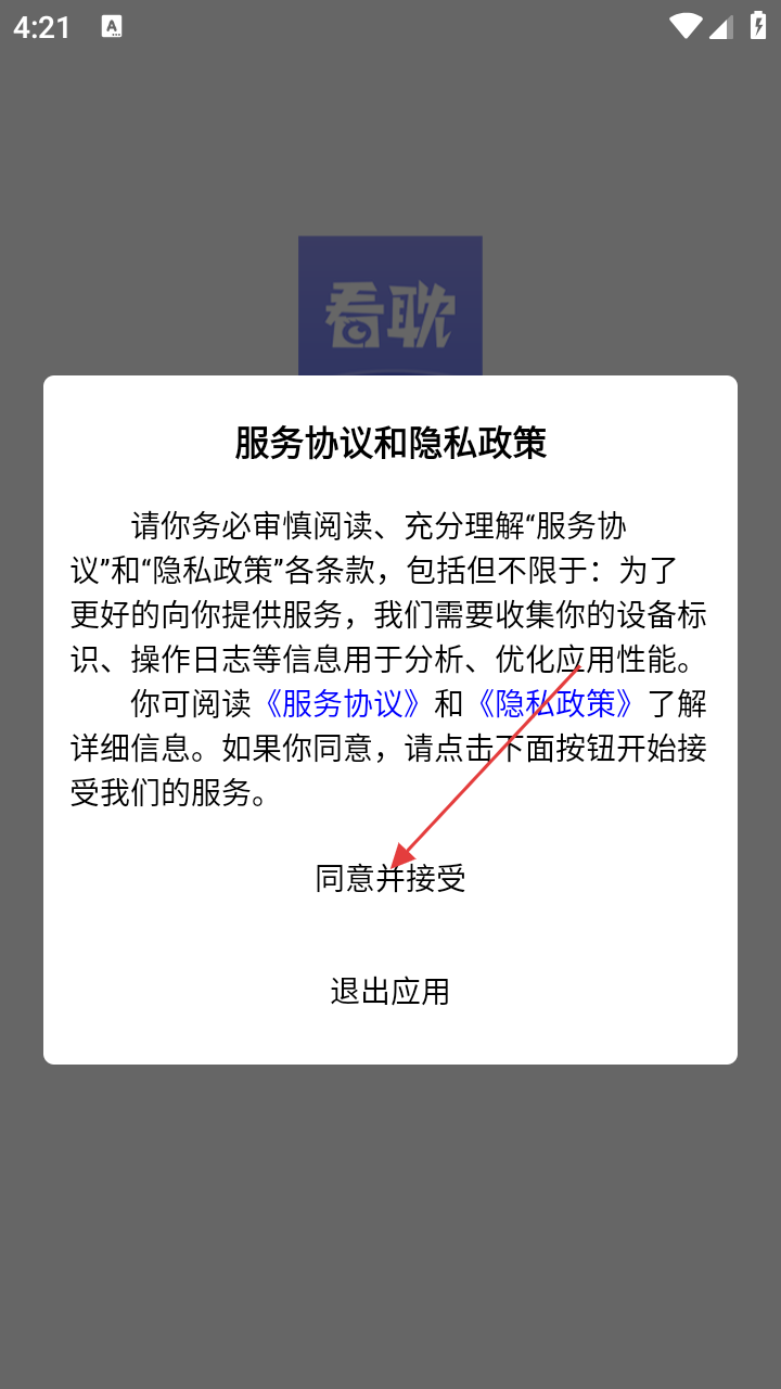 1、在本站下载后打开进入软件,点击同意并接受相关隐私服务;