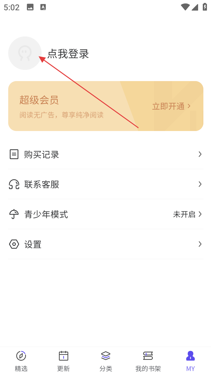 3、在【MY】页面,点击【点我登录】可进入登录界面,还能查看购买记录、联系客服等。
