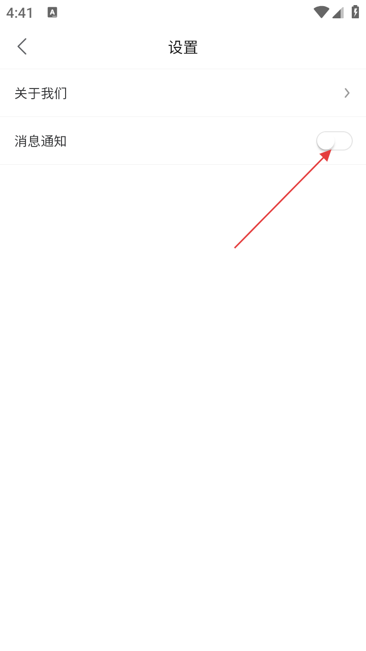 4、在设置界面,可开启【消息通知】功能,也可查看【关于我们】的相关信息。