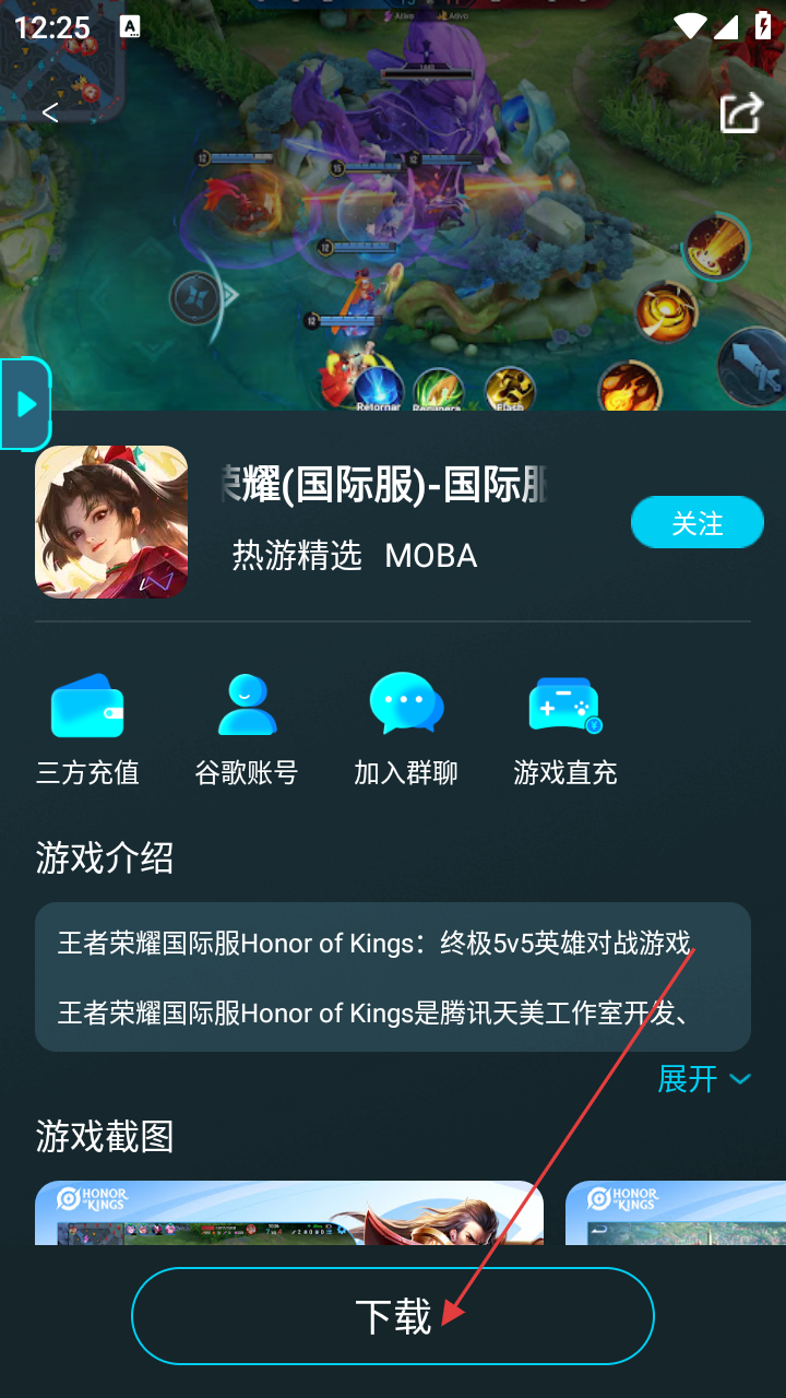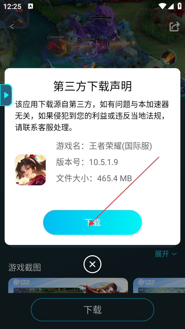 3、进入《王者荣耀(国际服)》详情页面,再次点击【下载】按钮。