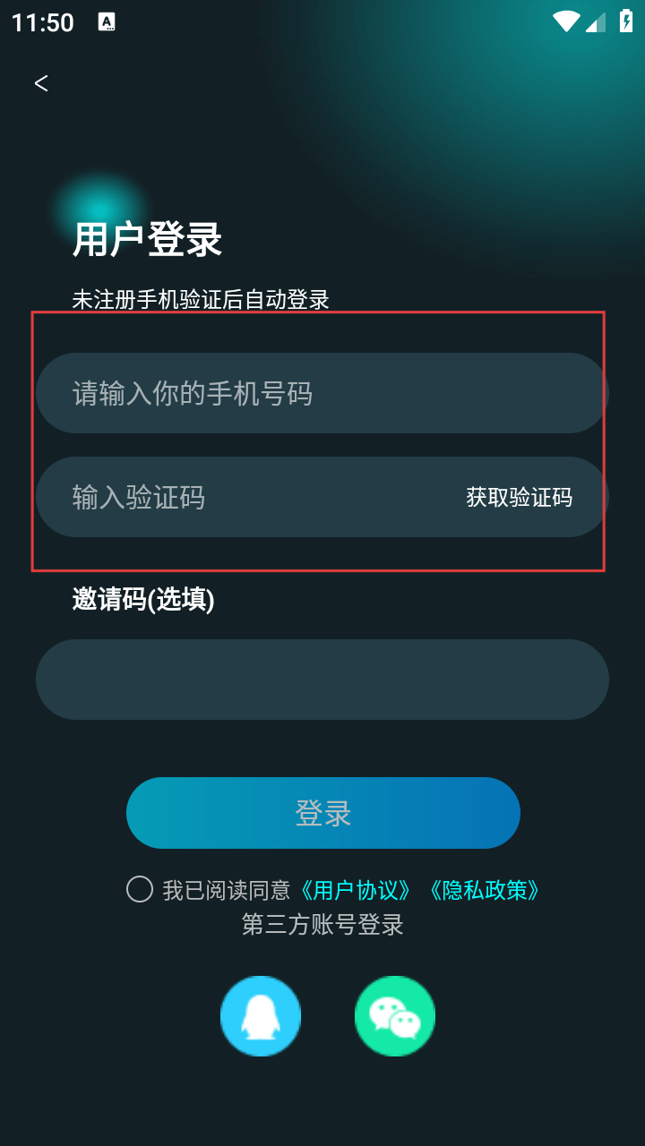 3、输入手机号,获取验证码,勾选协议,点击登录;未注册手机验证后自动登录
