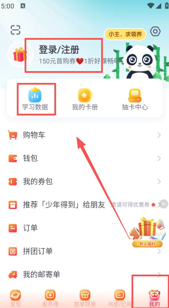 4、在 “我的” 页面,完成登录 / 注册后,可查看学习数据、卡册等个人学习相关信息。