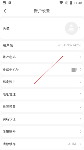 3、在账户设置界面中,选择【修改密码】选项,跳转至密码修改页面。