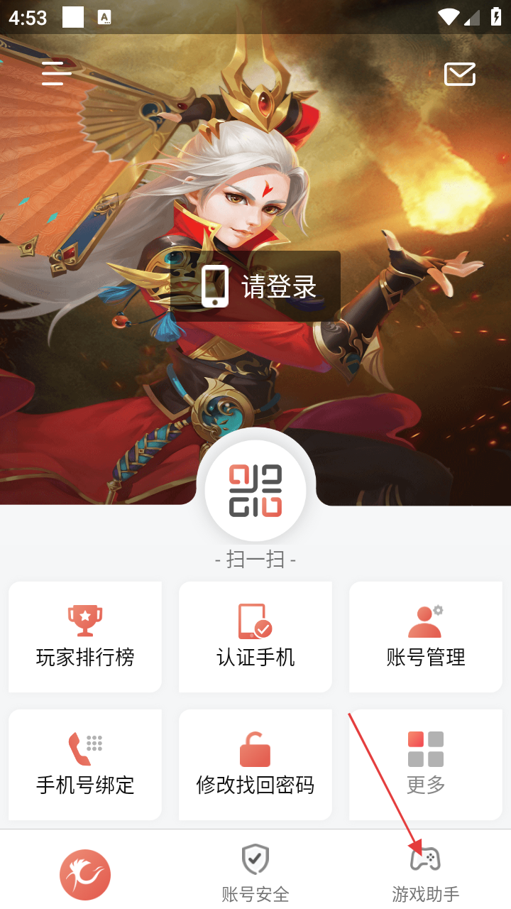 1、进入光宇游戏后,点击底部【游戏助手】,可进入游戏助手页面,开启游戏相关操作流程。