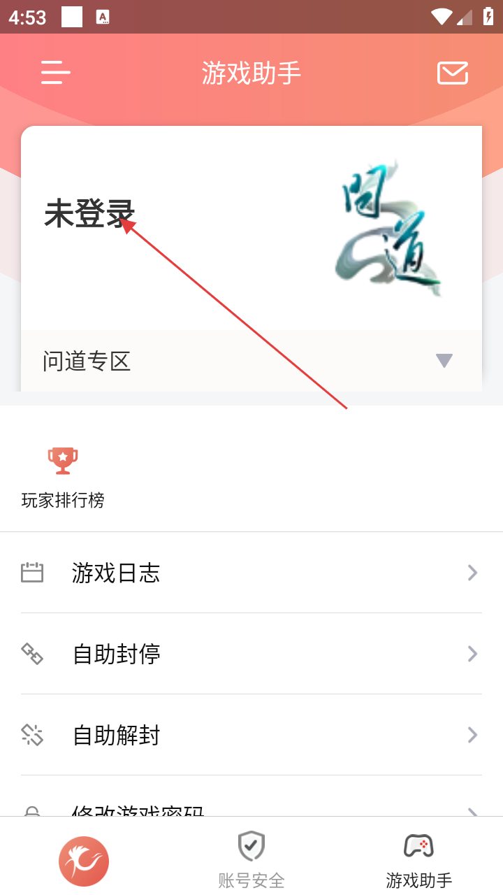 2、在游戏助手页面,点击【未登录】区域,进入账号登录界面,开始登录操作。