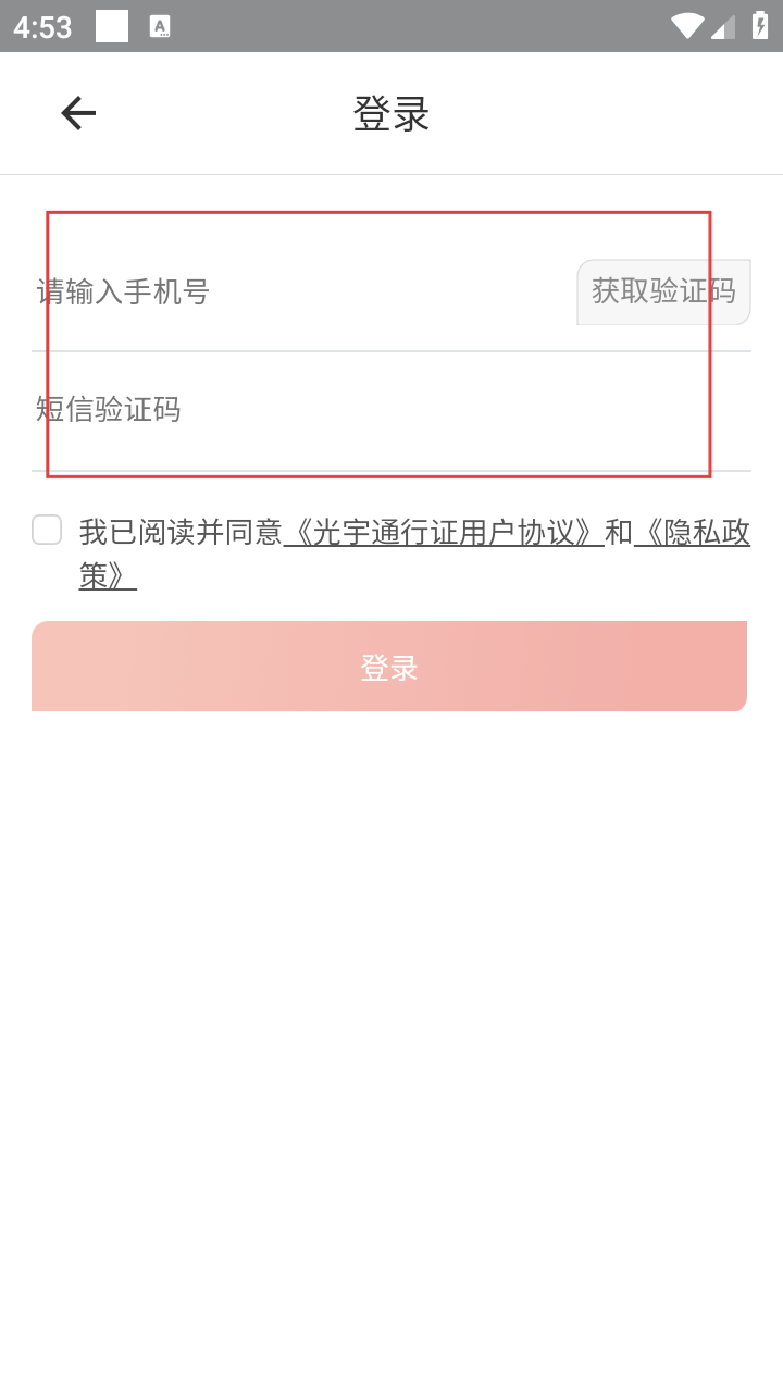 3、在登录界面,依次输入手机号和短信验证码,为账号登录做准备。