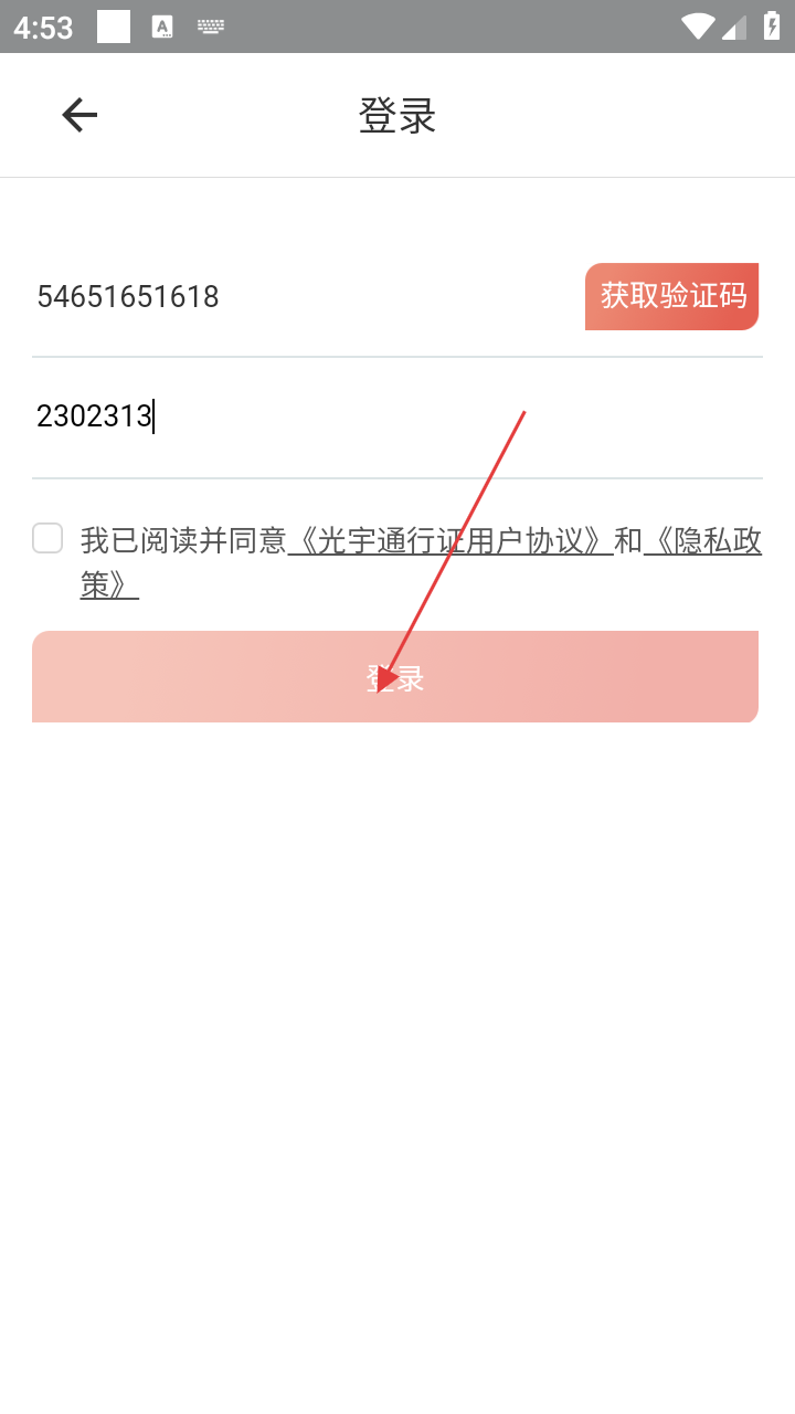 4、输入手机号和验证码后,勾选同意协议,点击【登录】,即可完成账号登录操作。