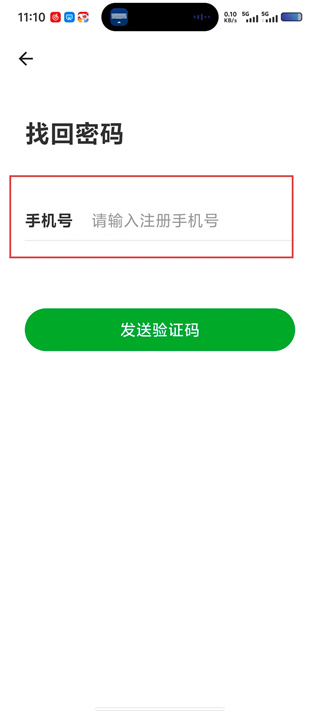 4、在“找回密码”页面的手机号输入框中填写注册手机号,点击【发送验证码】,后续填写验证码并设置新密码即可完成密码找回。