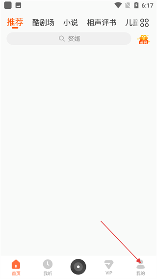 1、在酷我畅听首页,点击底部【我的】进入个人页面。