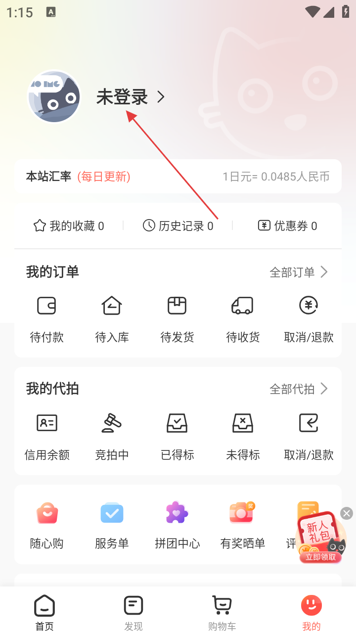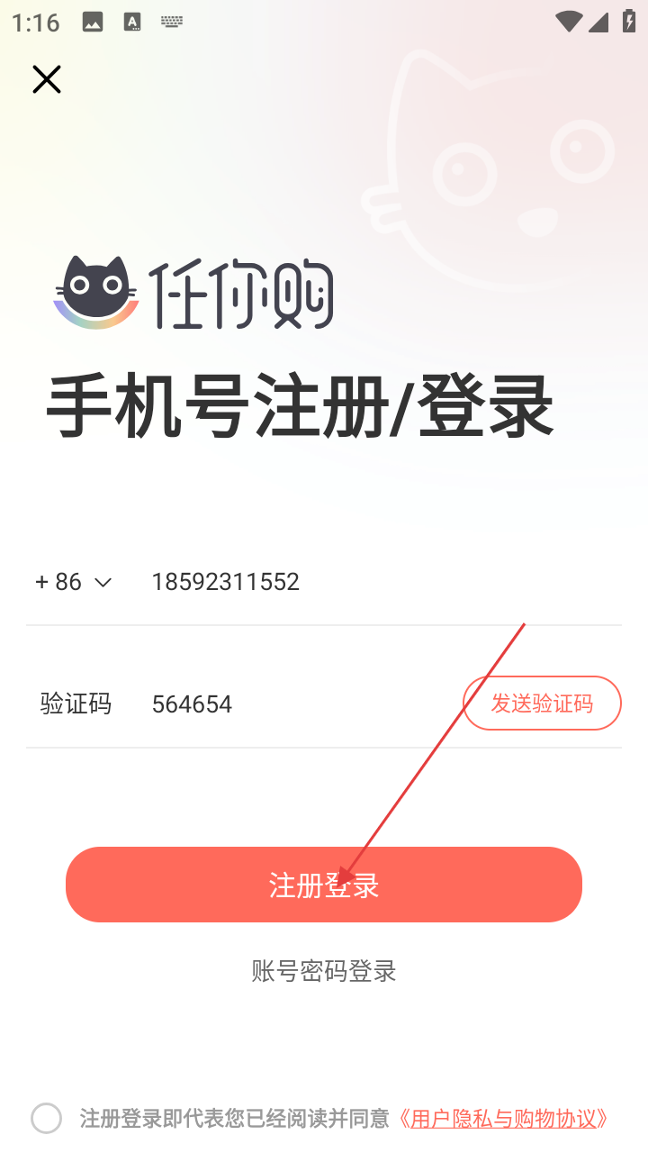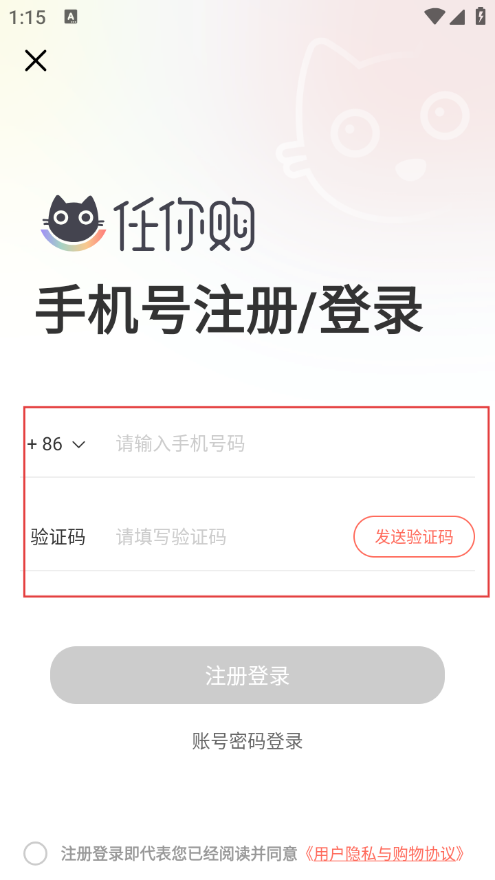 1、进入软件后,用户需要先注册登录任你购软件。
