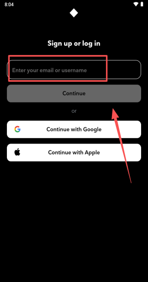 3、输入邮箱或用户名后按Continue,也可用谷歌苹果登录。