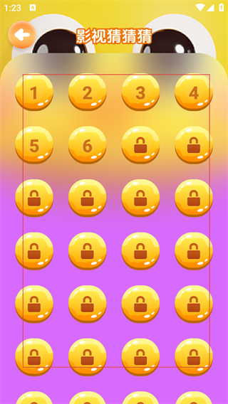3、进入【影视猜猜猜】板块后,可选择开启如1-6关的猜谜关卡,参与动漫猜谜挑战。