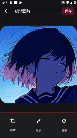 4、进入【编辑图片】页面,可使用【裁切】【画笔】工具对图片进行调整,编辑完成后点击右上角【保存】即可导出修改后的图片。