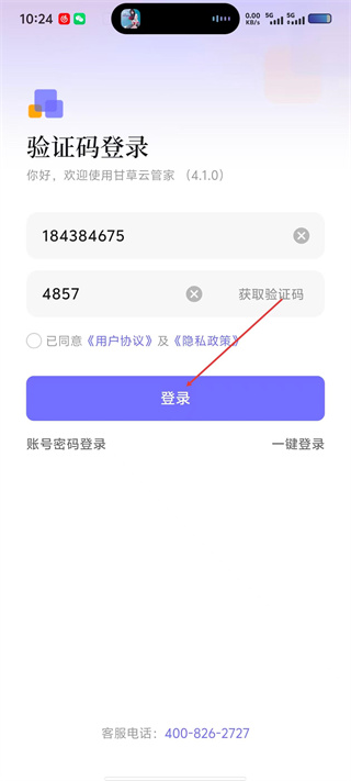 4、勾选“已同意《用户协议》及《隐私政策》”,点击【登录】,完成账号验证并进入应用。