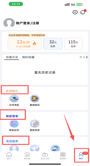4、在“我的”页面中,通过“智能管家”管理家庭智能设备。