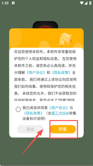 1、使用该软件前,阅读用户协议与隐私政策,点击同意即可进入软件界面。