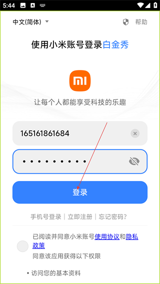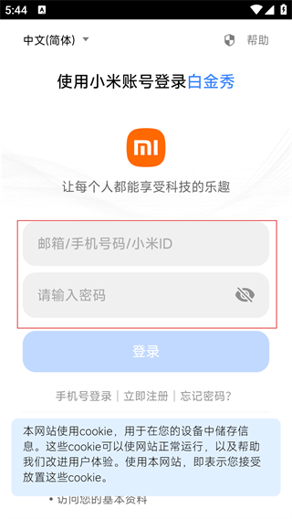4、输入小米账号信息后,点击“登录”按钮,即可完成【白金秀】的小米账号登录操作。