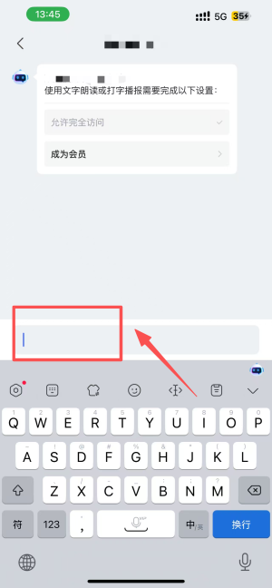 1、使用语音播报输入法时,先完成允许完全访问等设置,在输入框中输入文字内容。