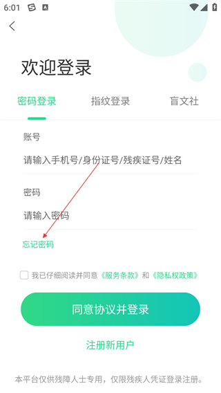 3、在登录页面,若忘记密码,点击【忘记密码】选项,进入密码找回界面。